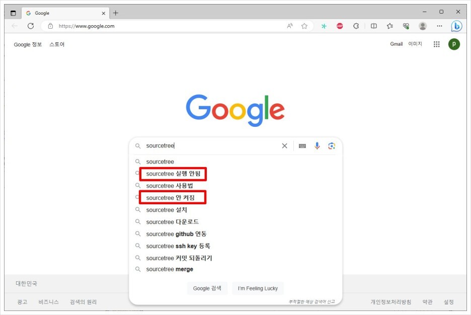 이런 저런 생각을 하면서 소스트리 설치를 위해 구글에서 "source tree"를 입력하는데...