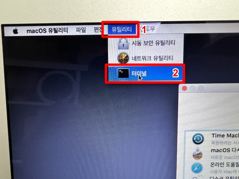 3) 여기서 상단 메뉴의 [유틸리티 > 터미널]을 선택합니다.
