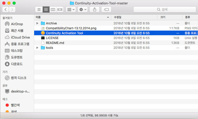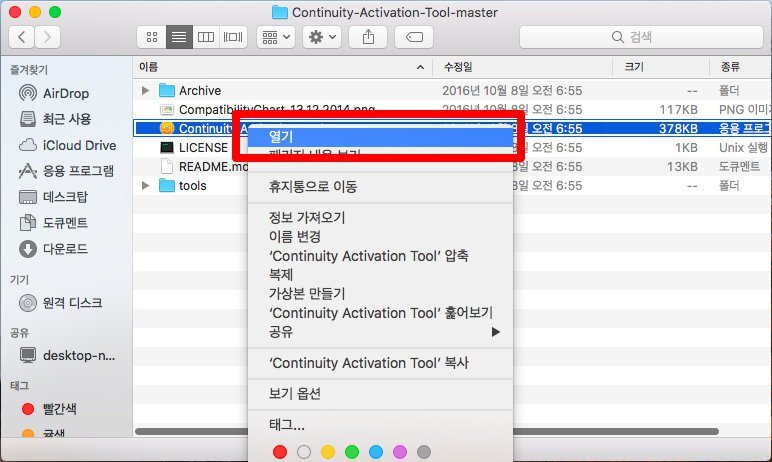하지만 다행인것은 연속성 기능 활성화 툴(Continuity Activation Tool)을 이용하면 에어드롭을 사용할 수 있다는 것...^^