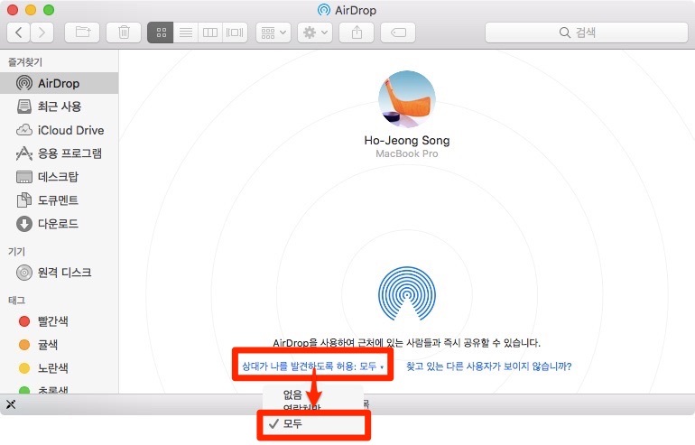 에어드롭이 안됩니다. 주변 기기를 찾거나 다른 맥북에서 내 맥북을 찾을 수가 없습니다... ㅠㅠ