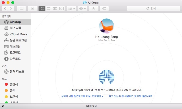 이제 맥북에어 2011에서 에어드롭을 마음껏 사용할 수 있습니다...^^