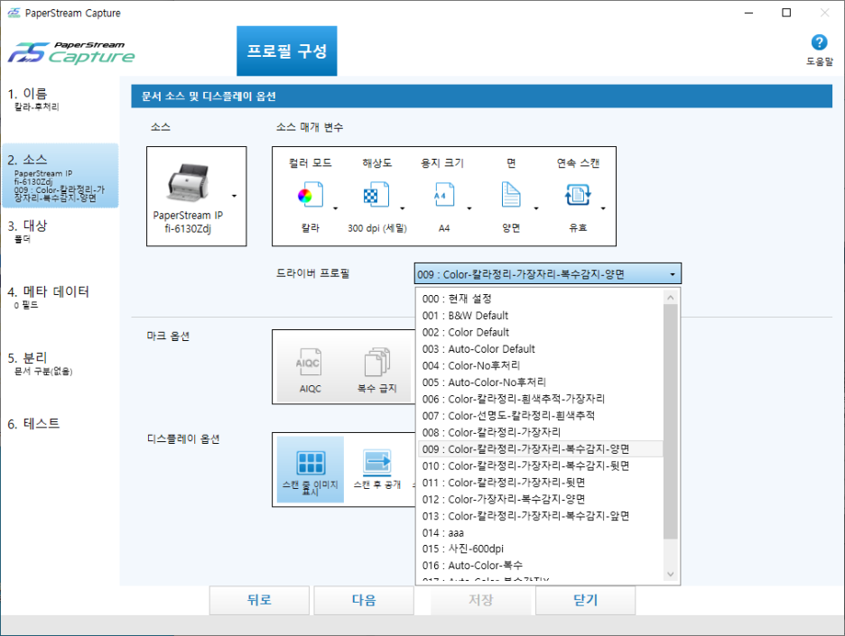 후지쯔 fi-6140 스캐너 프로필 설정하기