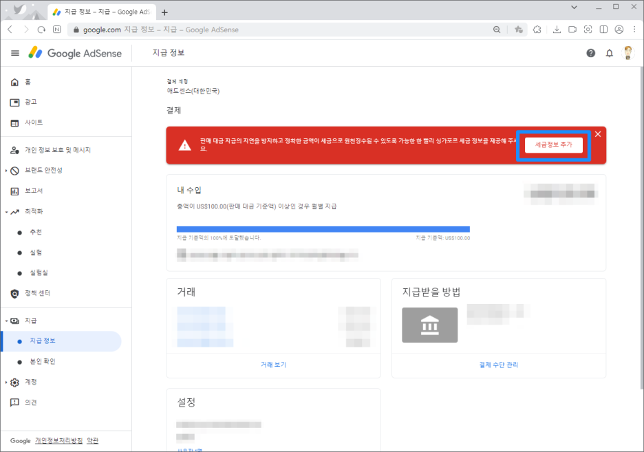 이런거 제때 입력하지 않으면 계정이 지급이 보류되거나 심하면 계정이 정지될 수 있는거 모두 아시죠?
