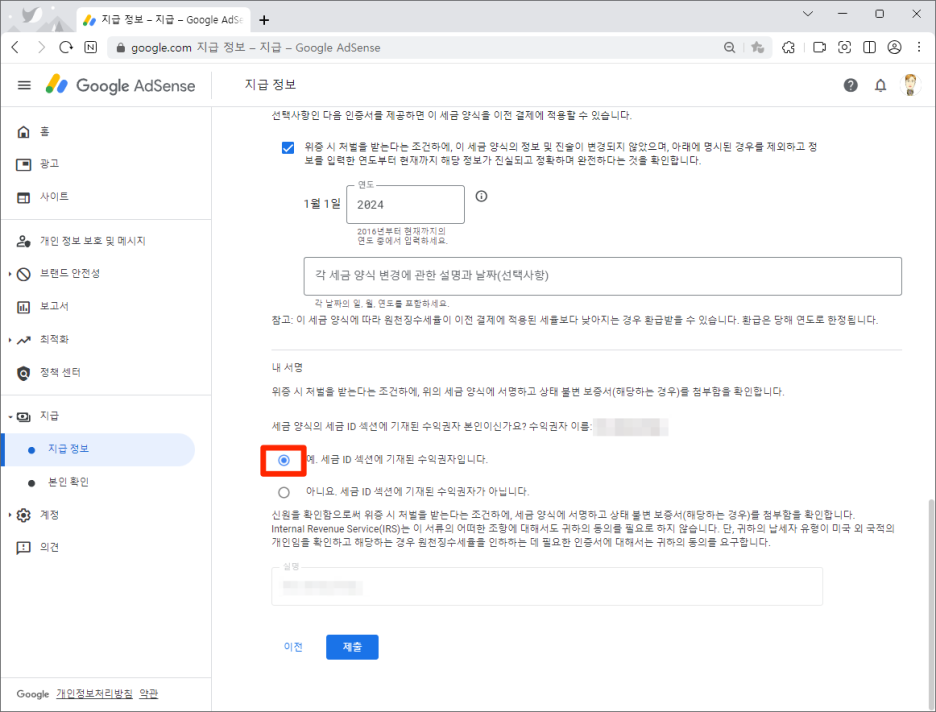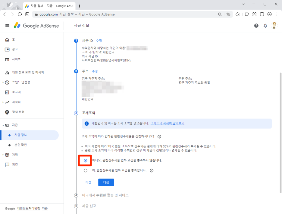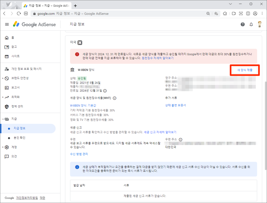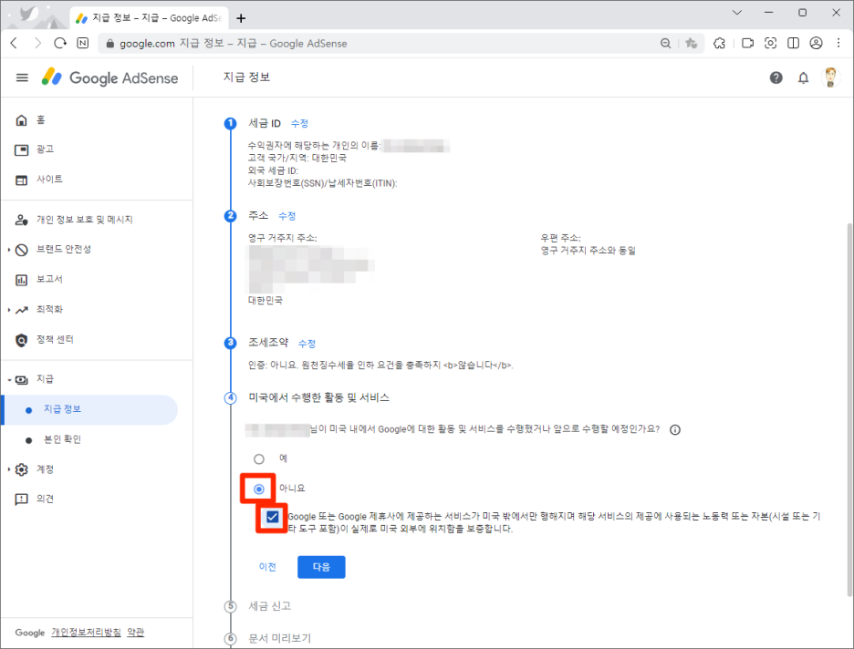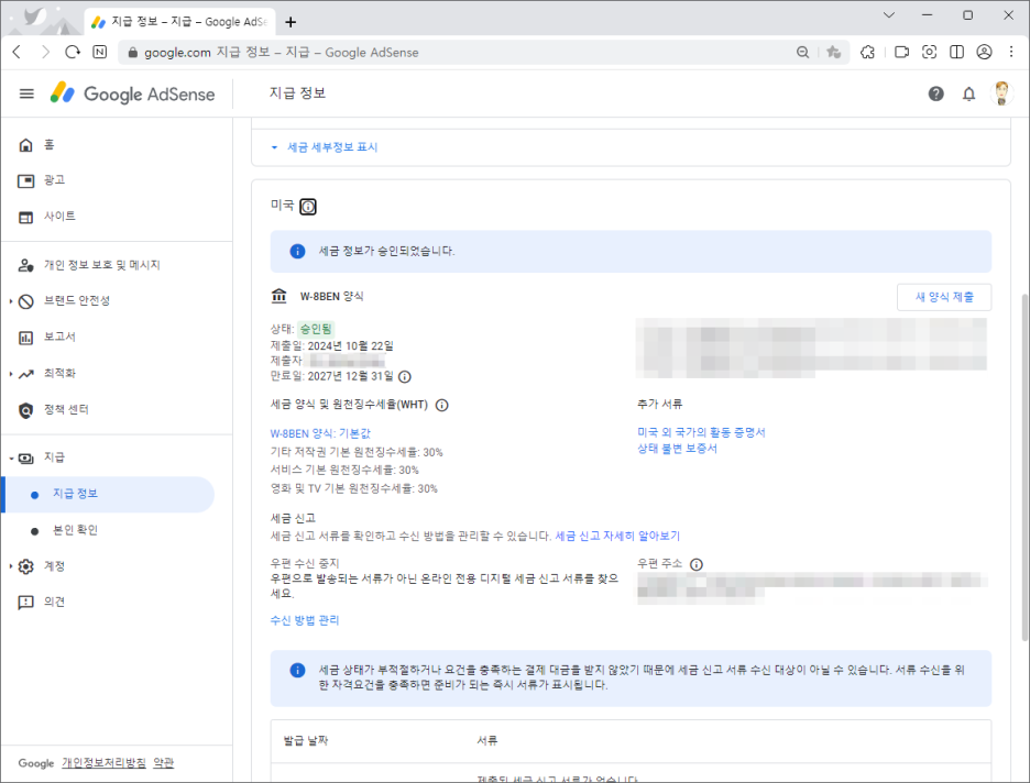 #구글 #애드센스 #미국 #세금양식 #제출하기