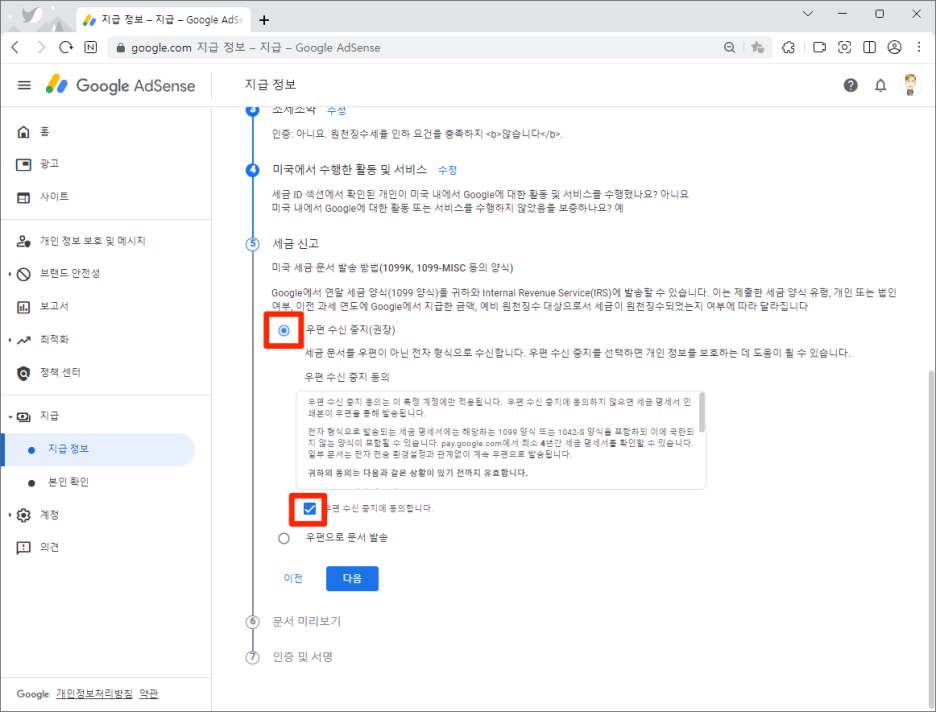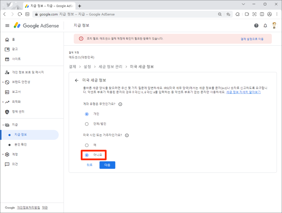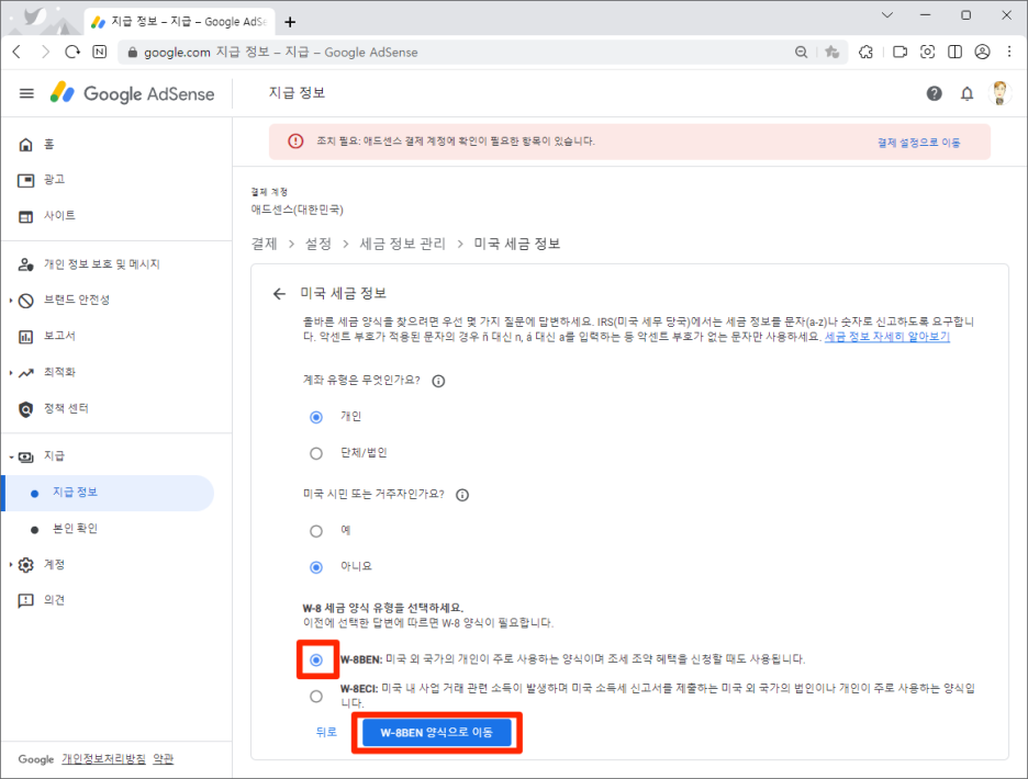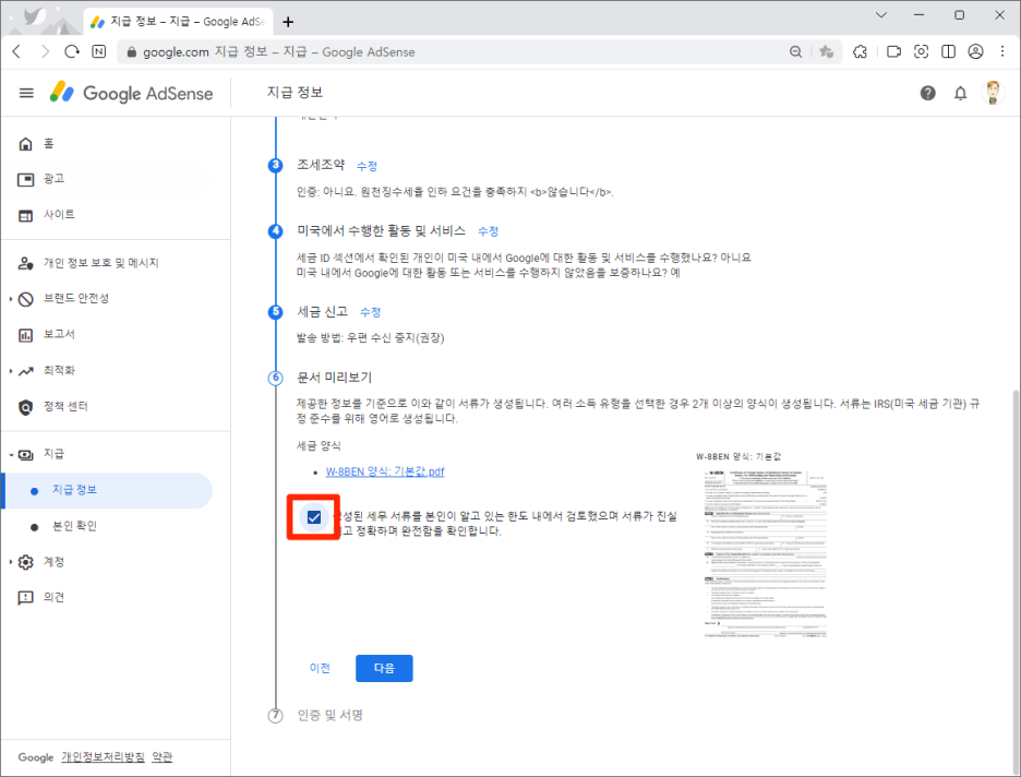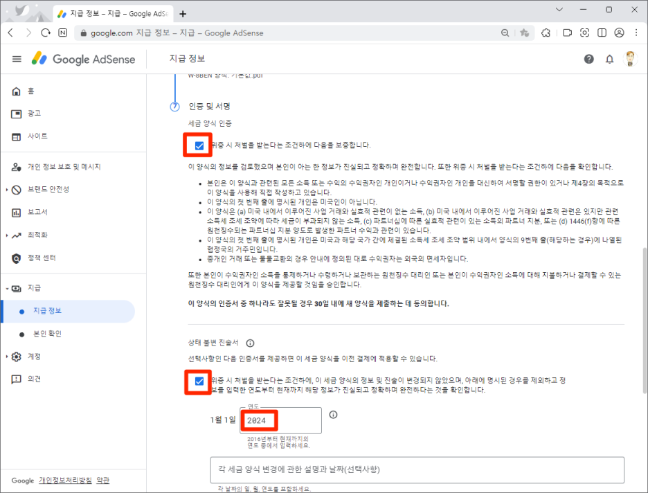 #구글 #애드센스 #미국 #세금양식 #제출하기
