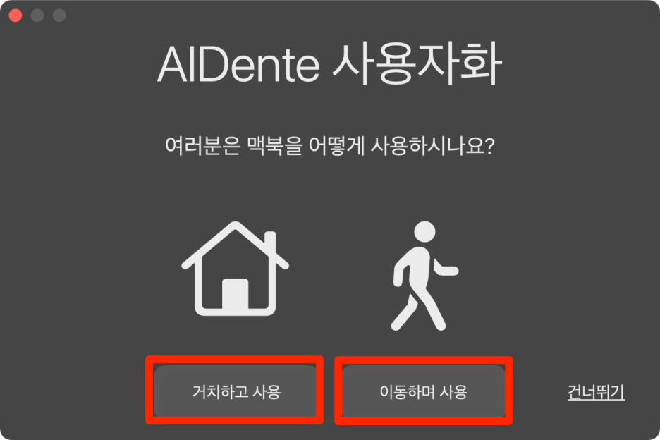 다음에는 맥북의 사용 방식, 즉 집에서 거치하고 사용하는지 또는 이동하면서 사용하는지를 선택해야 합니다.
