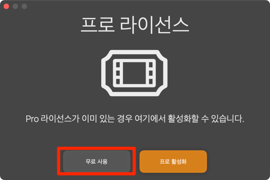 화살표 버튼을 클릭하면 다음과 같이 프로 라이선스를 활성화 하라는 창이 나옵니다.