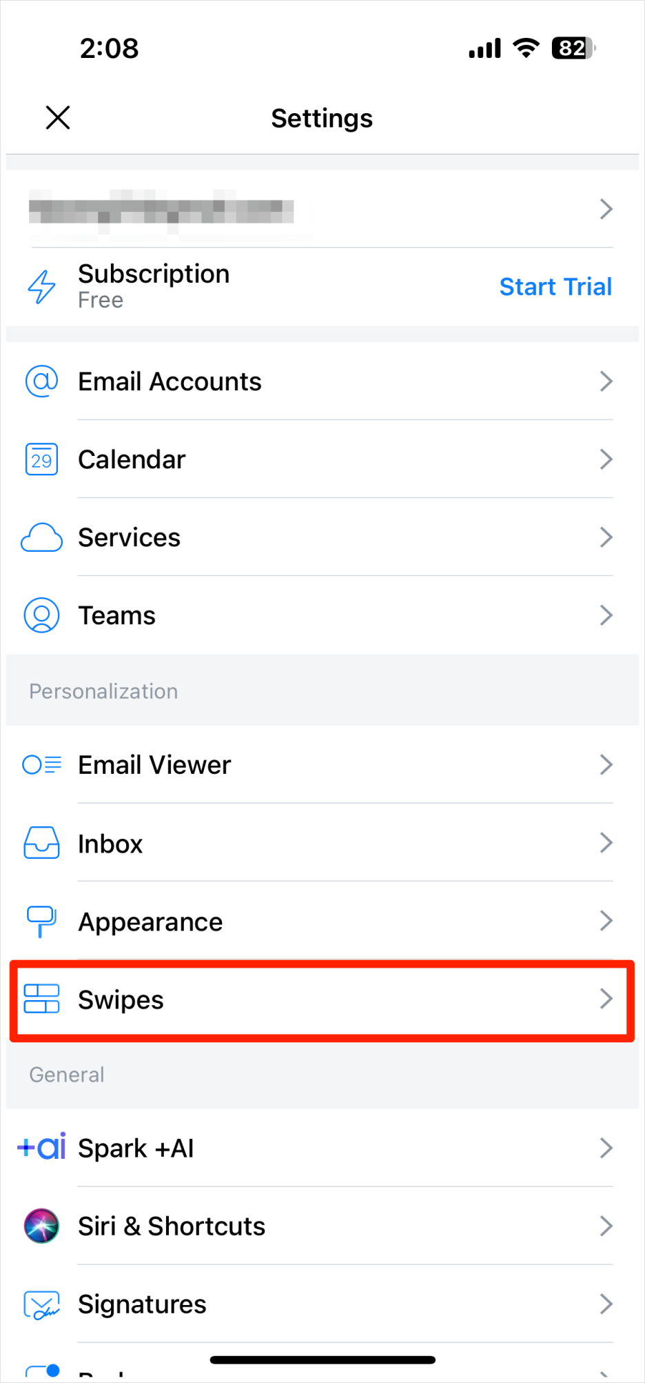 아래로 내려 [Swipes]를 선택 한 후 원하는 기능으로 설정합니다.