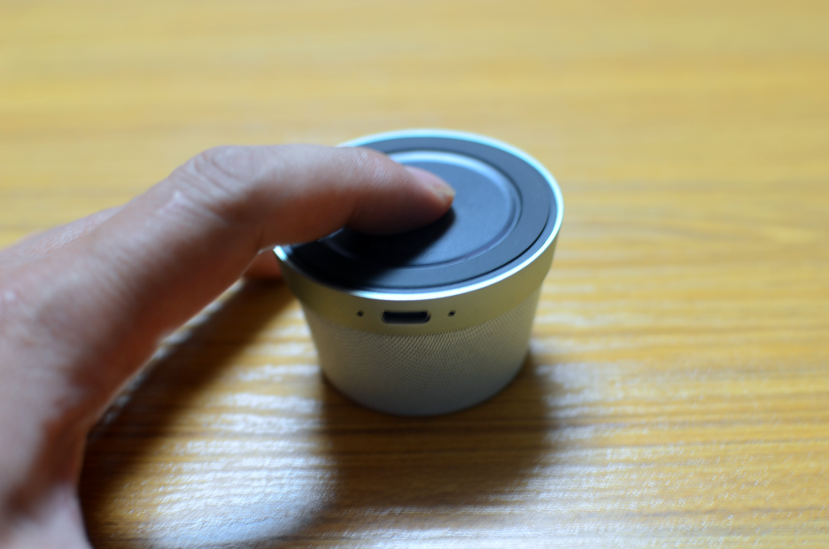아랫면 중간을 꾹 누르면 전원이 켜집니다.