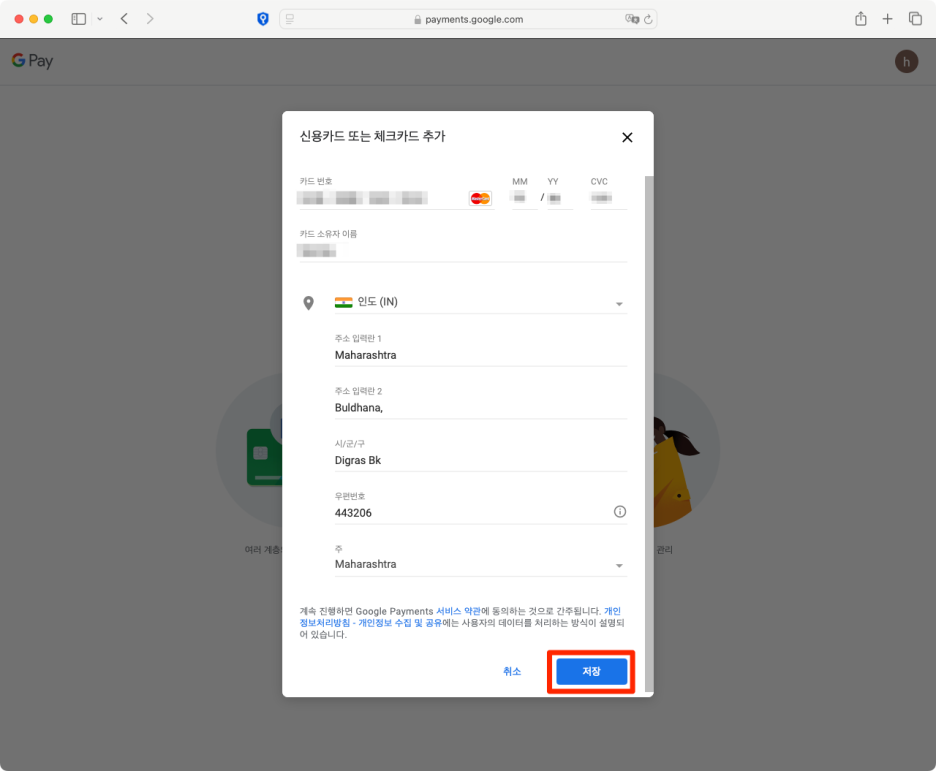 - 주소 : 인도 주소 입력