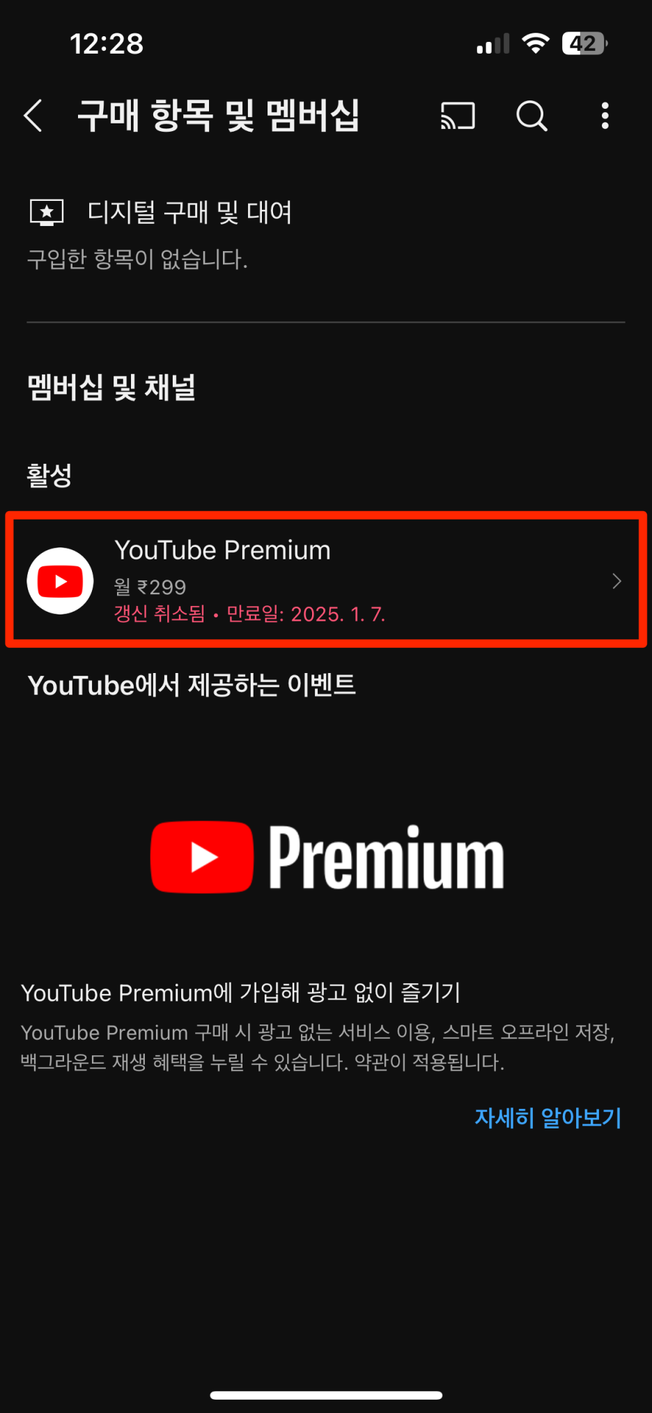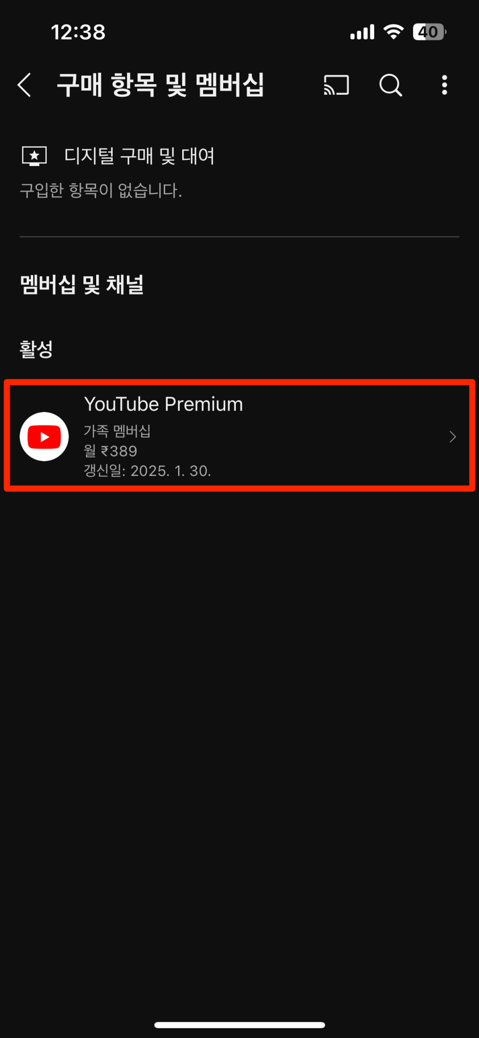 - 유튜브 개인 멤버십은 195루피/월, 패밀리 멤버십은 389루피/월(애플에서 구매하는것이 좀 더 비쌈)