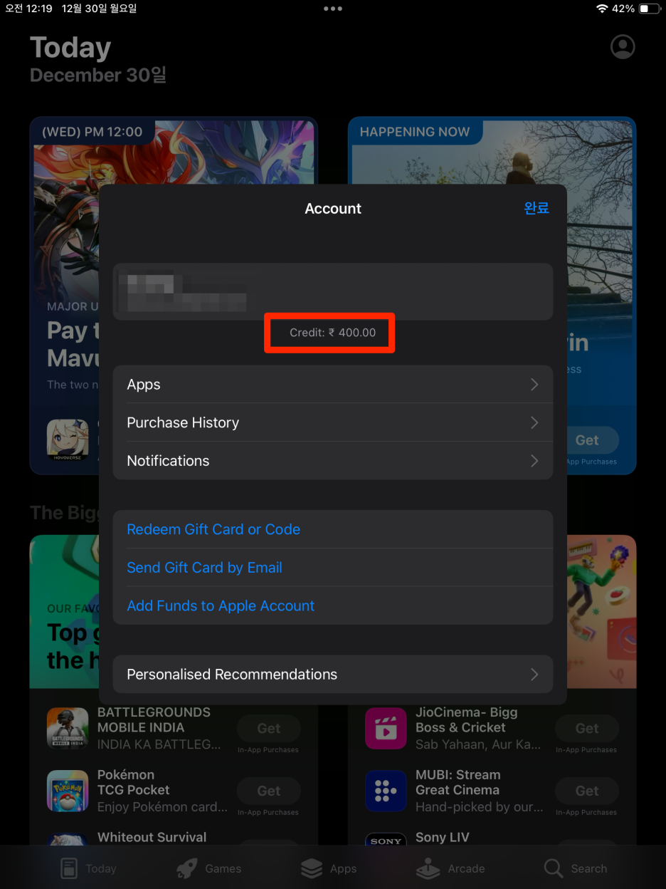 - 매달 결제할 때 인도 애플아이디로 로그인해서 충전하면 됨.