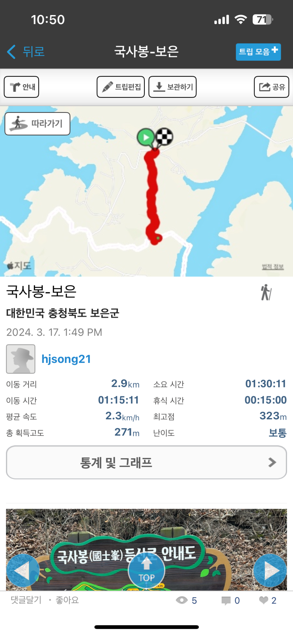 대청호 오백리길 5-1구간이 짧아 추가로 국사봉에 다녀왔습니다.