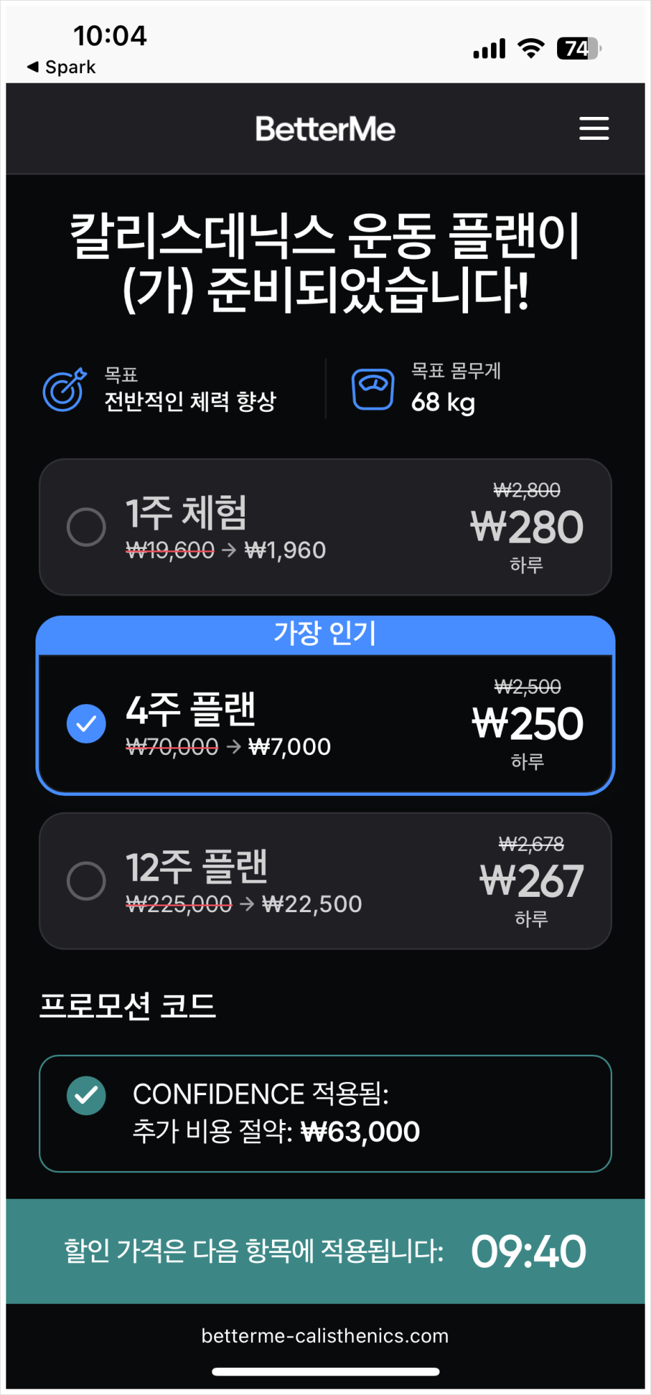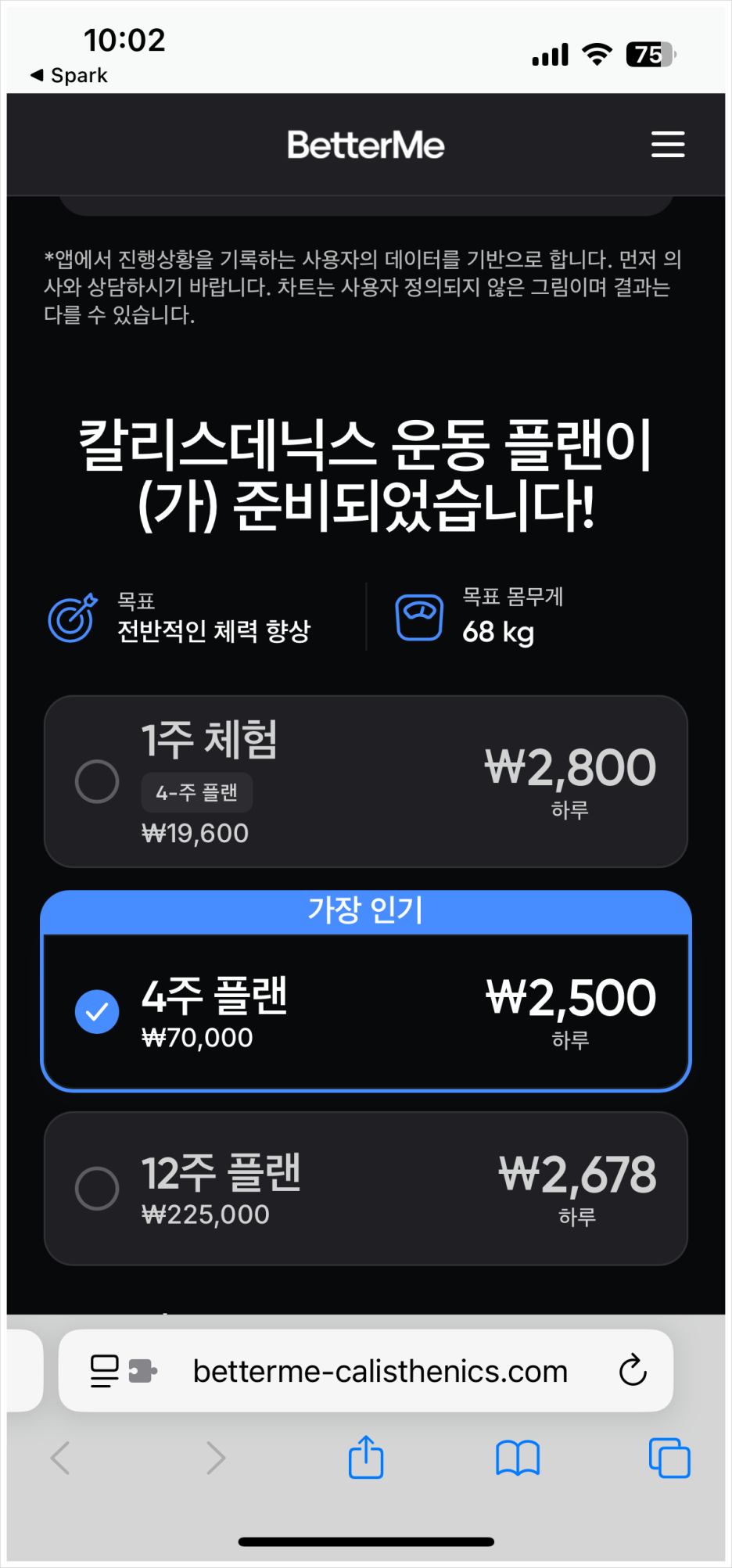 BetterMe는 거르기로 했습니다.