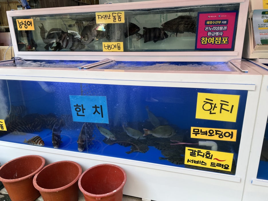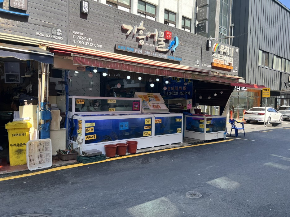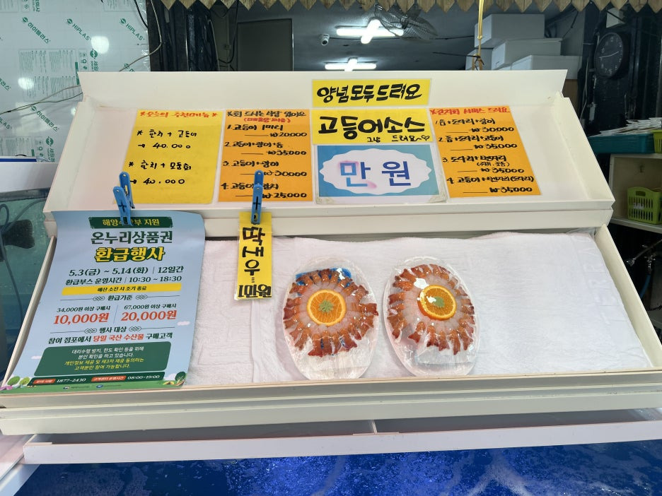 이 식당으로 가서 먹으라고 하네요(바닷가 어시장의 초장집 같은 느낌? ㅎ)