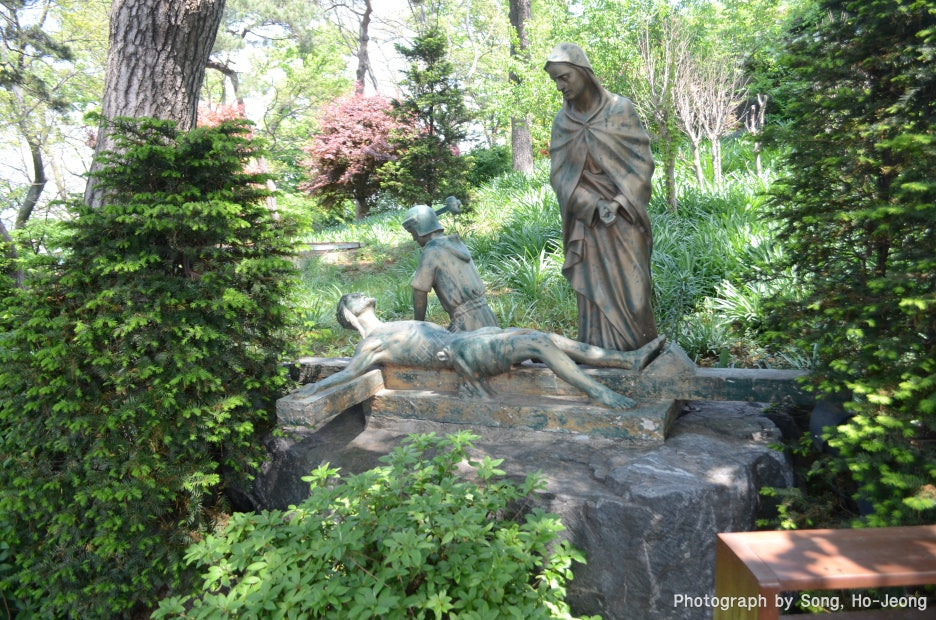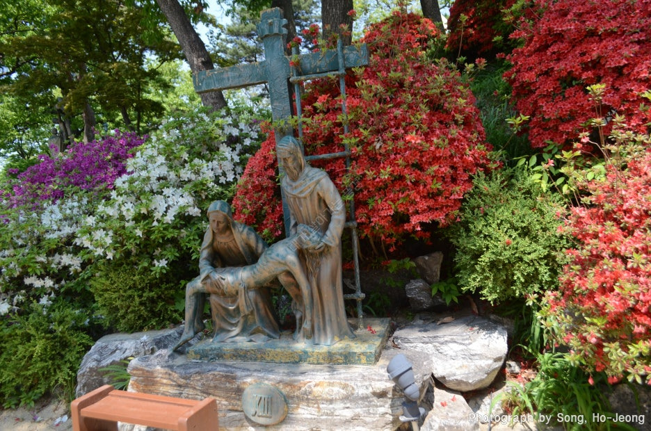 공세리 성당은 신유박해, 병인박해 등 4대 박해를 겪으며 수많은 신자들이 순교한 대표적 성지입니다. 현재 공세리성당에는 신유·병인박해 때 순교한 32분의 순교자들이 모셔져 있으며, 성당 주변에는 십자가의 길 14처 산책 코스가 조성되어 순례객들이 신앙을 고백하며 걸을 수 있습니다.