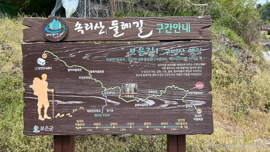 1구간은 구병산 옛길로 대략 14.3km의 긴 거리이지만 난이도가 '하' 이므로 초보자들도 쉽게 걸을 수 있을 것 같습니다.