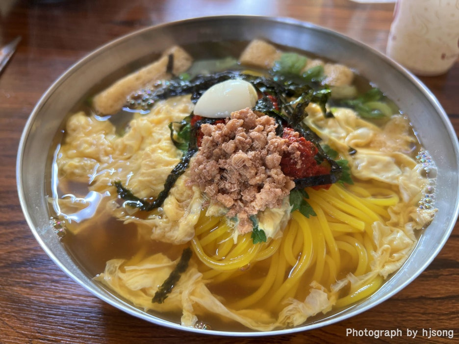풍미당의 시그니쳐메뉴 물쫄면. 국수인듯, 우동인듯한 국물에 쫄면 면을 넣은 물쫄면.