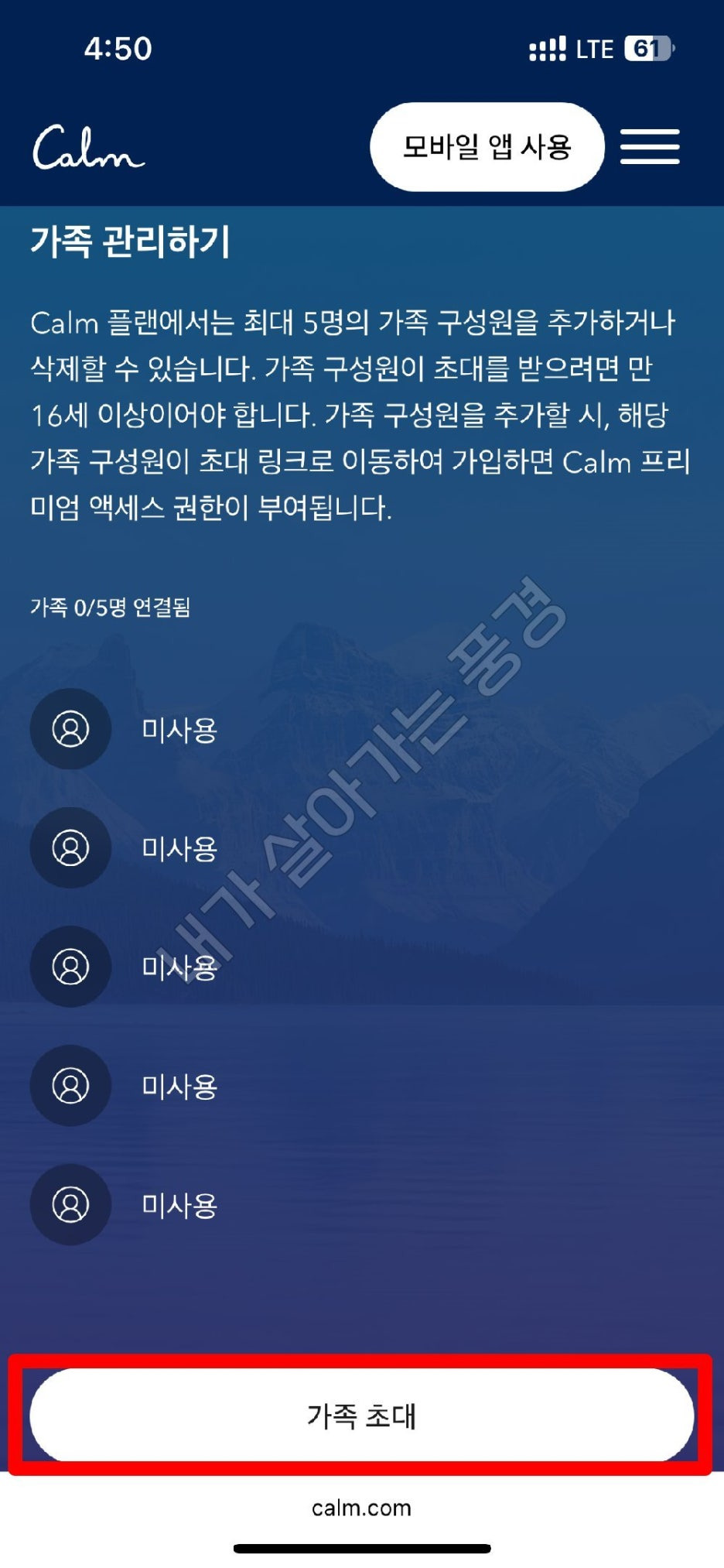 이 링크를 타고 가입하면 최대 5명의 가족이 함께 Calm 프리미엄을 사용할 수 있습니다.
