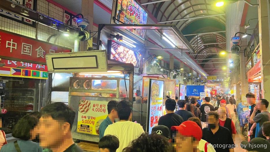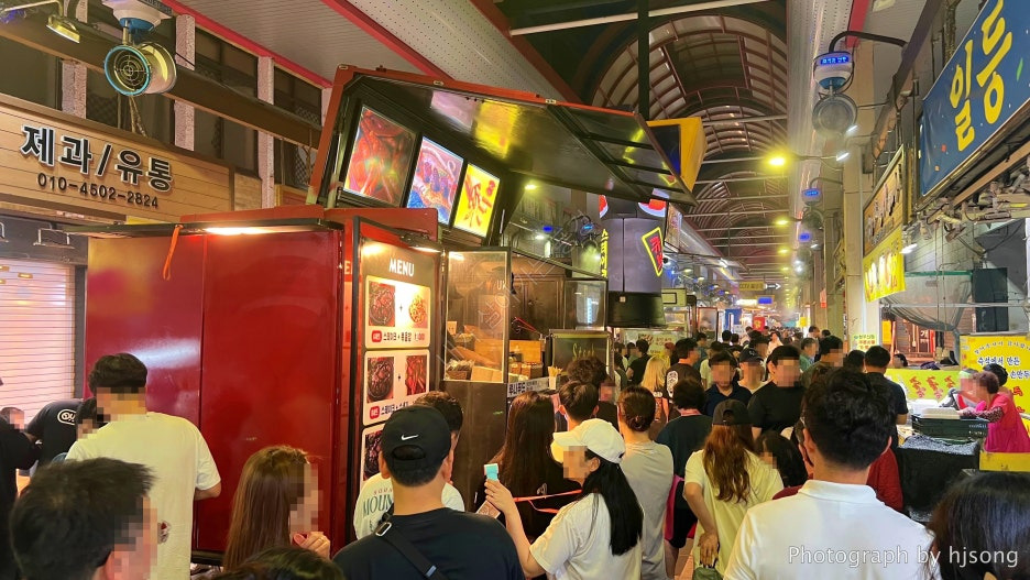 육거리 야시장 현장에 도착하자마자 압도되는 것은 인파의 물결이었다. 마치 청주 시민 모두가 한자리에 모인 듯한 착각을 불러일으킬 정도로 사람들이 북적였다. 평소 이 시간이면 인적이 끊겼을 육거리 시장 일대가 이토록 활기찬 모습으로 변모한 것을 보니, 절로 미소가 지어졌다.
