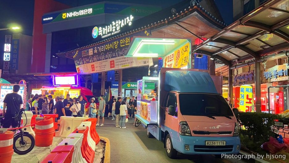 가장 인상적이었던 것은 시장 골목 깊숙한 곳까지 진입한 푸드트럭들의 모습이었다. 낮 동안 전통 상인들의 터전이었던 그 자리는, 해가 지고 어둠이 내려앉자 각양각색의 트럭들이 나름의 자리를 찾아 정착하고, 저마다의 특색 있는 음식으로 사람들의 발걸음을 붙잡고 있었다.