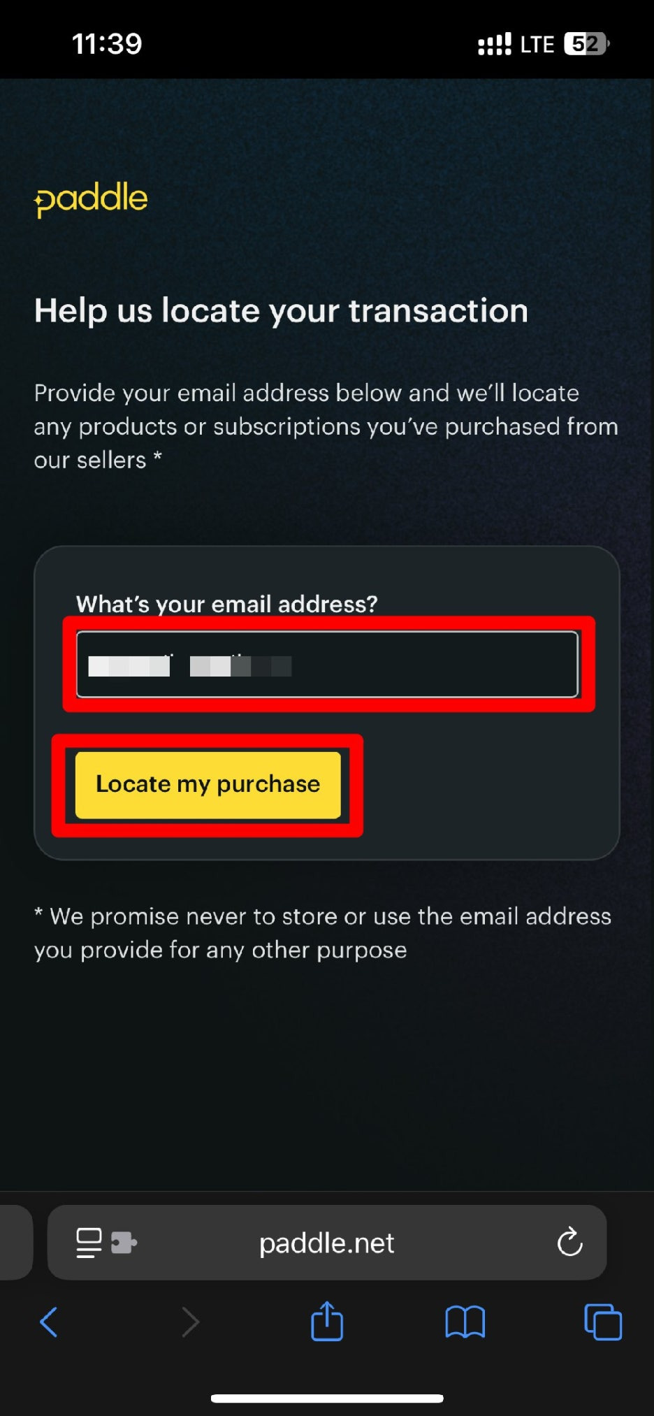 다음에 나오는 화면에서 내가 구독할때 입력한 이메일 주소를 입력하고 [Locate my purchase]를 클릭합니다.