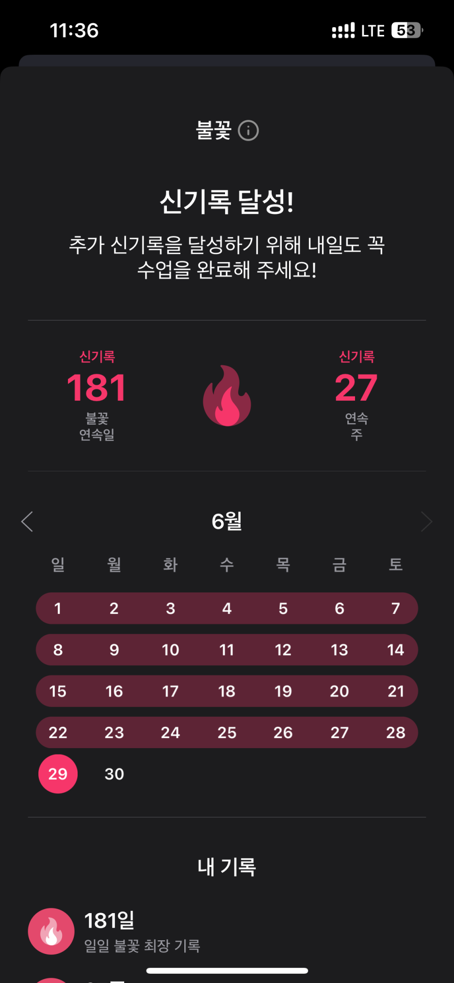 6월 29일 까지181일 동안 열심히도 달려왔습니다.