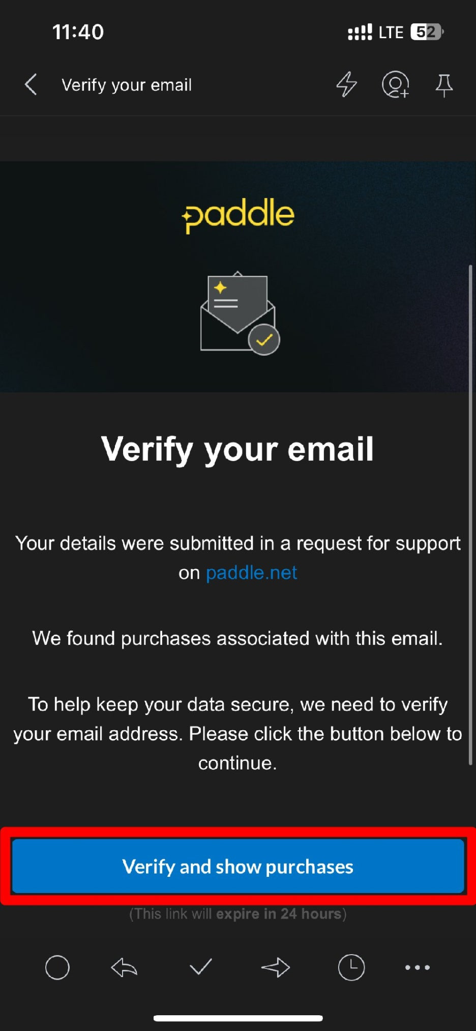 이메일을 확인 한 후 [Verify and show purchases]를 클릭합니다.