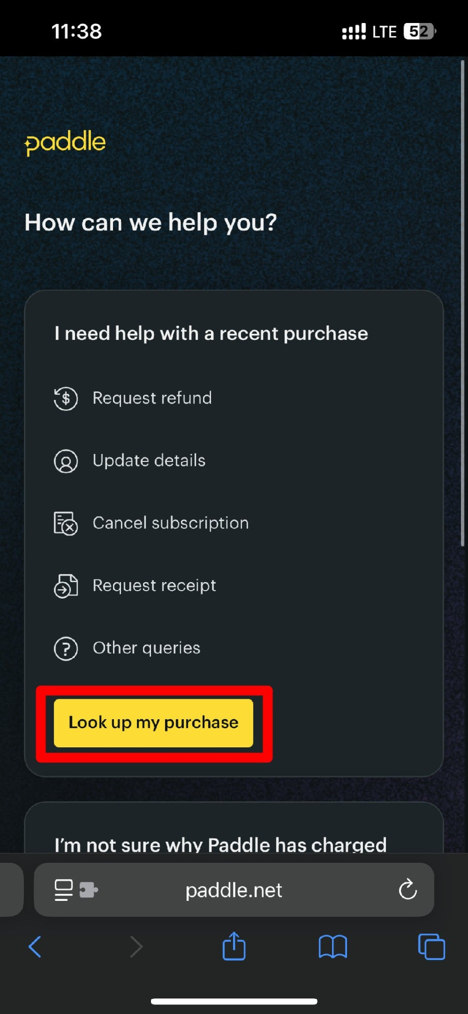 하단의 [Look up my purchase]를 클릭합니다.