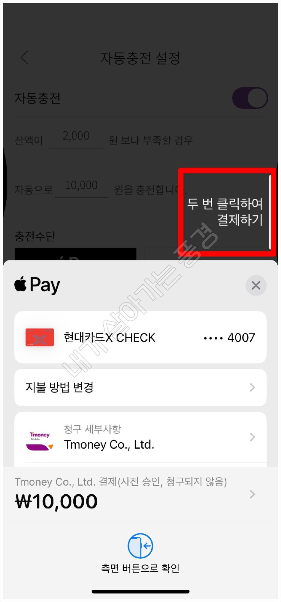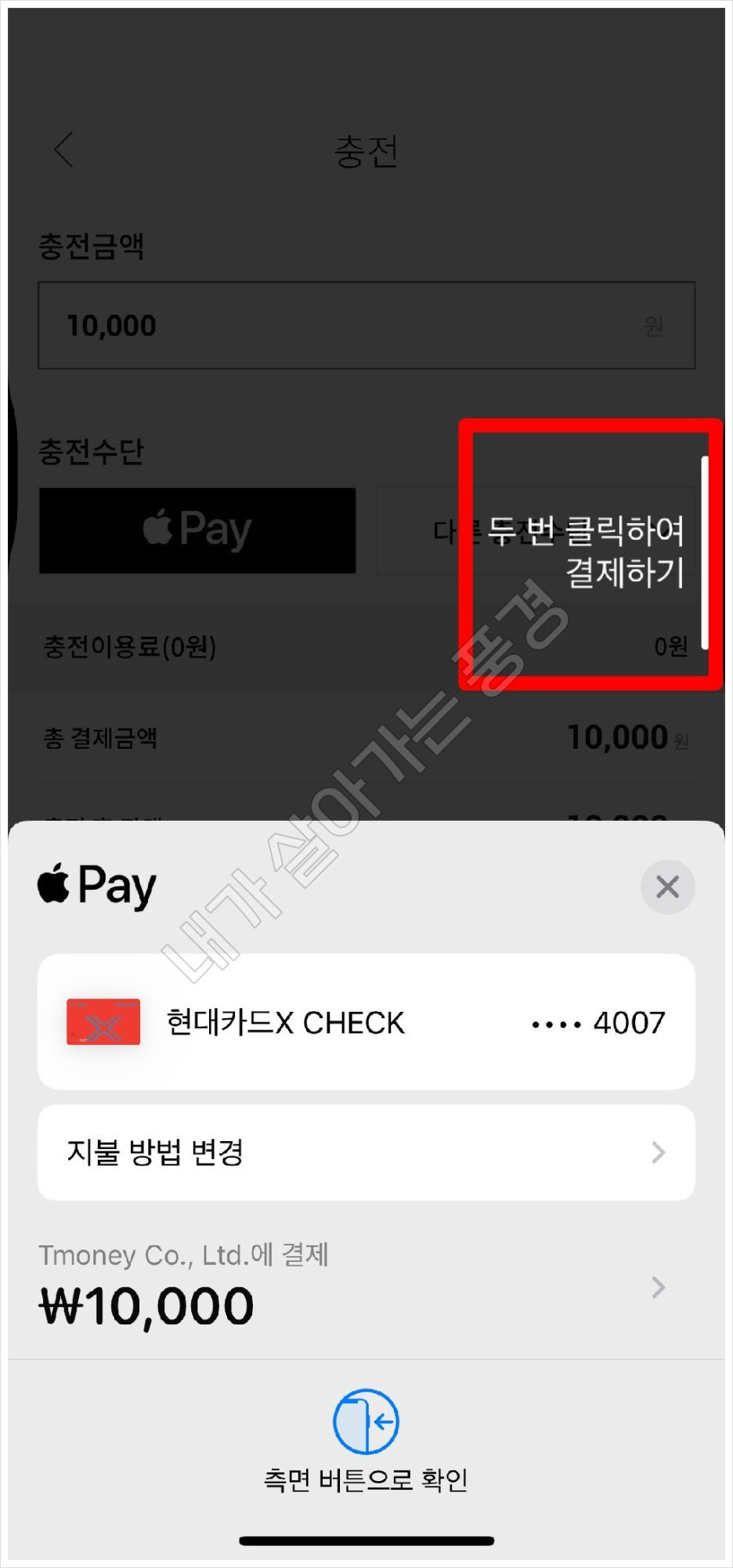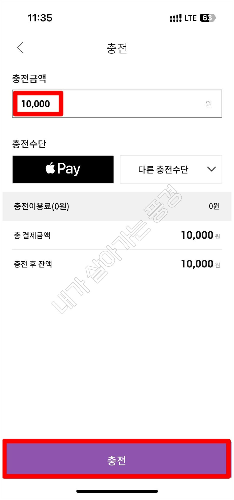 2) 충전 수단을 선택합니다. 저의 경우는 애플페이를 선택하였습니다.