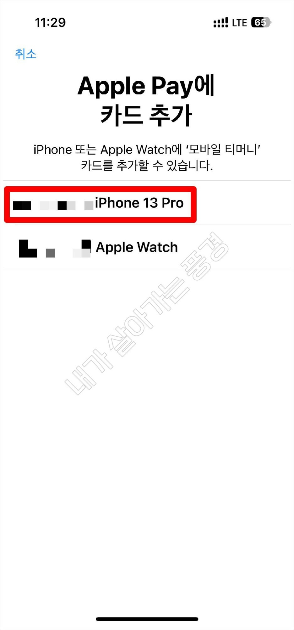 추가 화면에서 아이폰 또는 애플 워치를 선택한 후 [다음] 버튼을 클릭하면 알아서 애플 지갑에 추가됩니다.