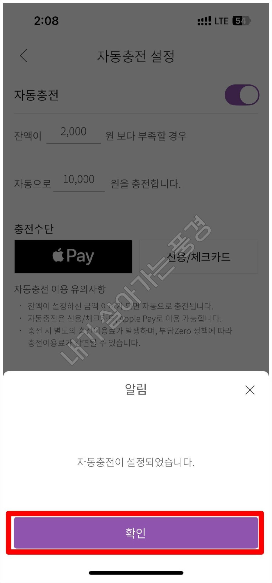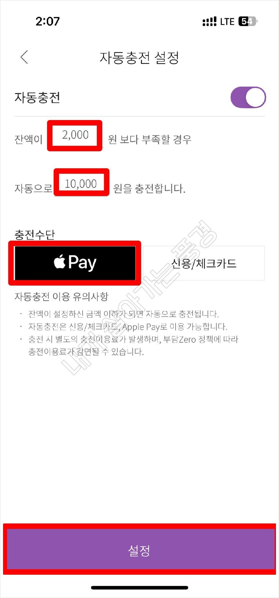 자동충전 설정 방법은 다음과 같습니다.