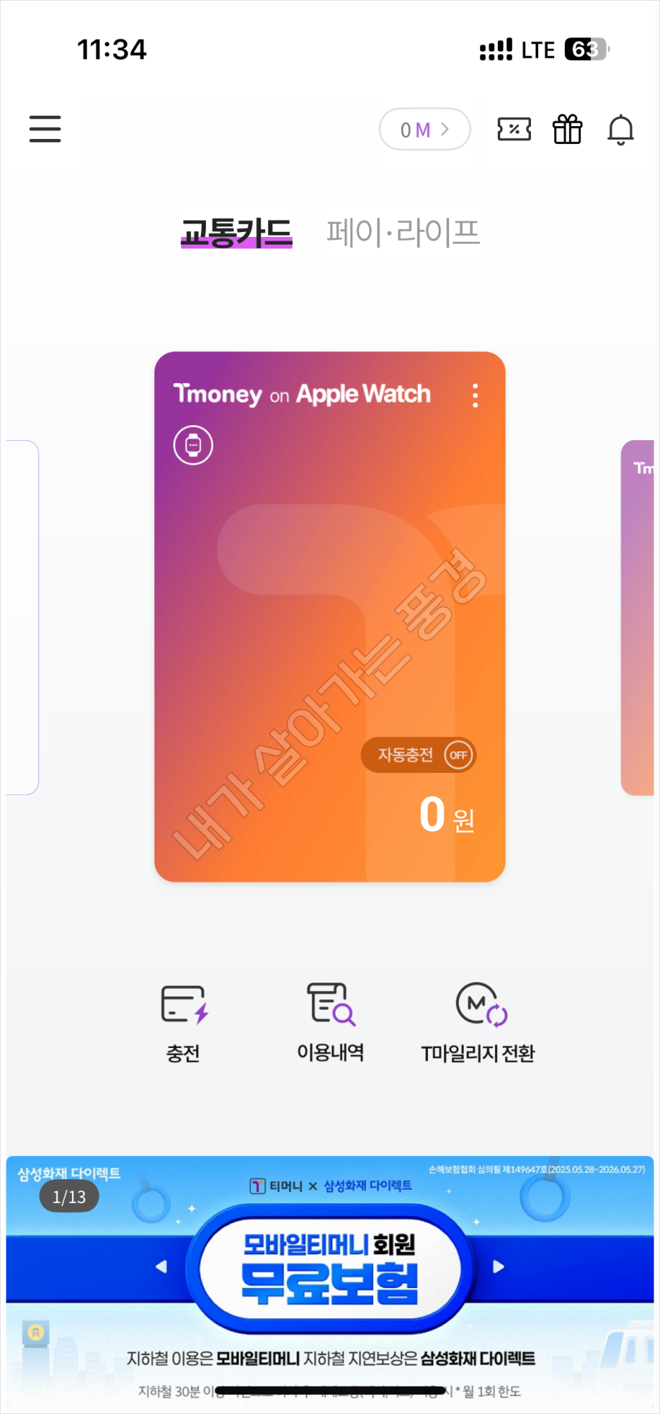 6) iPhone용 티머니 카드가 등록된 것을 확인할 수 있습니다.