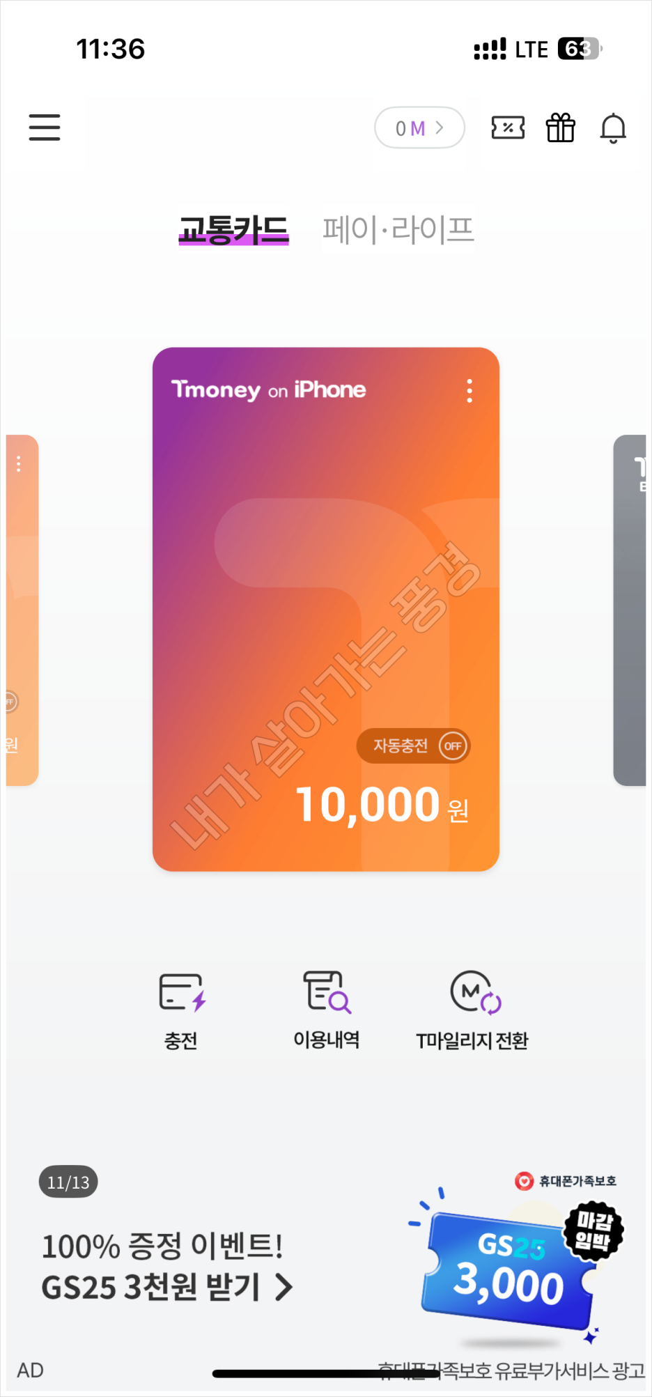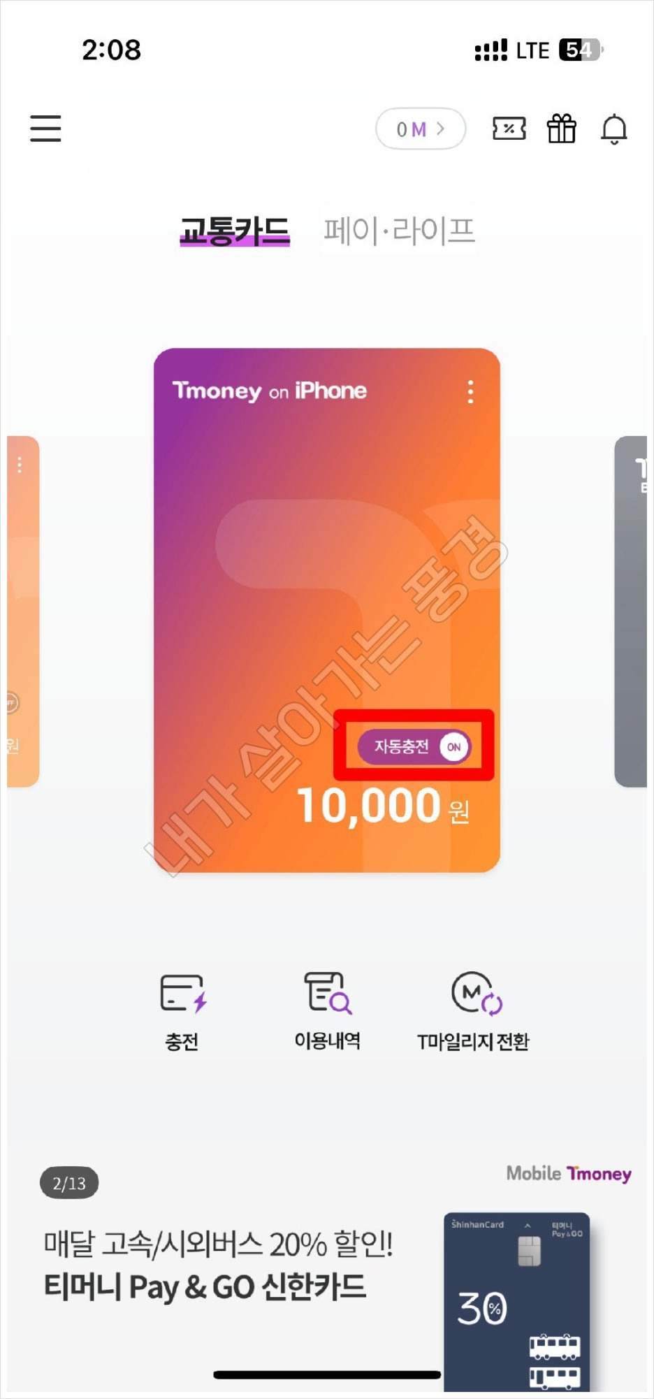자동으로 충전되니까 항상 여유롭게 대중교통을 이용할 수 있을 것 같습니다.