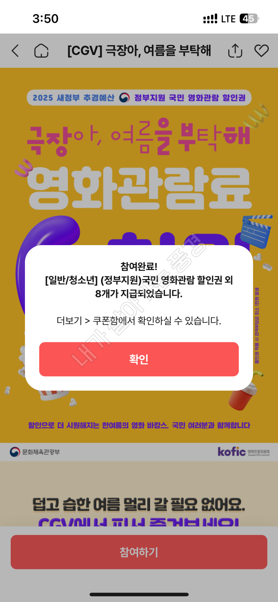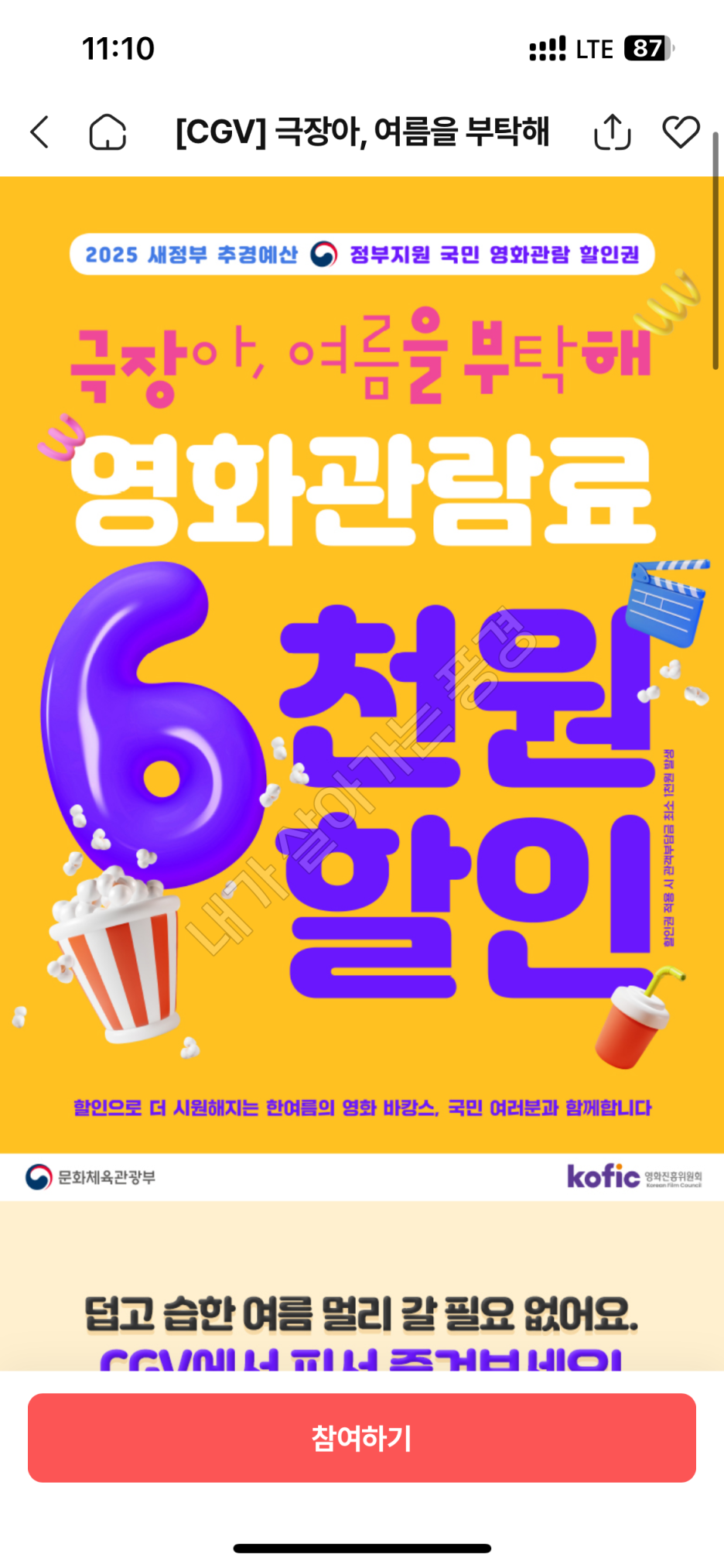 오늘(7월 25일) 오전 10시부터 문체부에서 무려 450만 장의 영화할인쿠폰을 배포하기 시작했습니다.