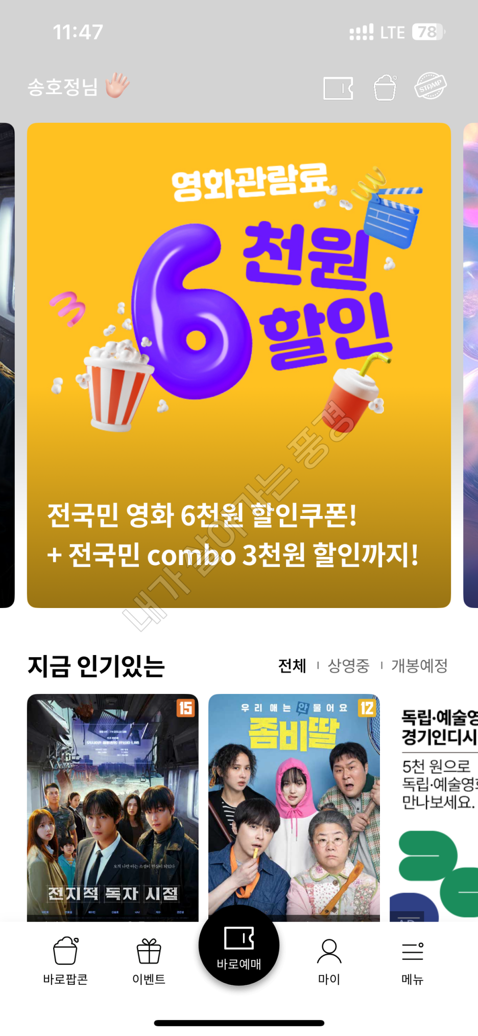 실제로 영화 할인 쿠폰을 받으러 가봤습니다.