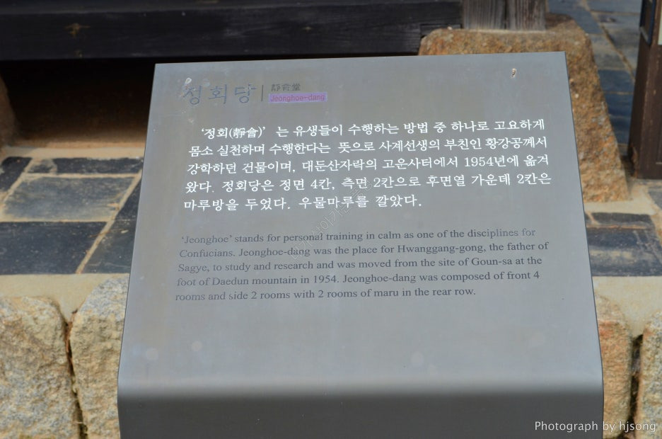 응도당에 걸려있는 '정회당' 현판이 정말 인상적이었습니다.