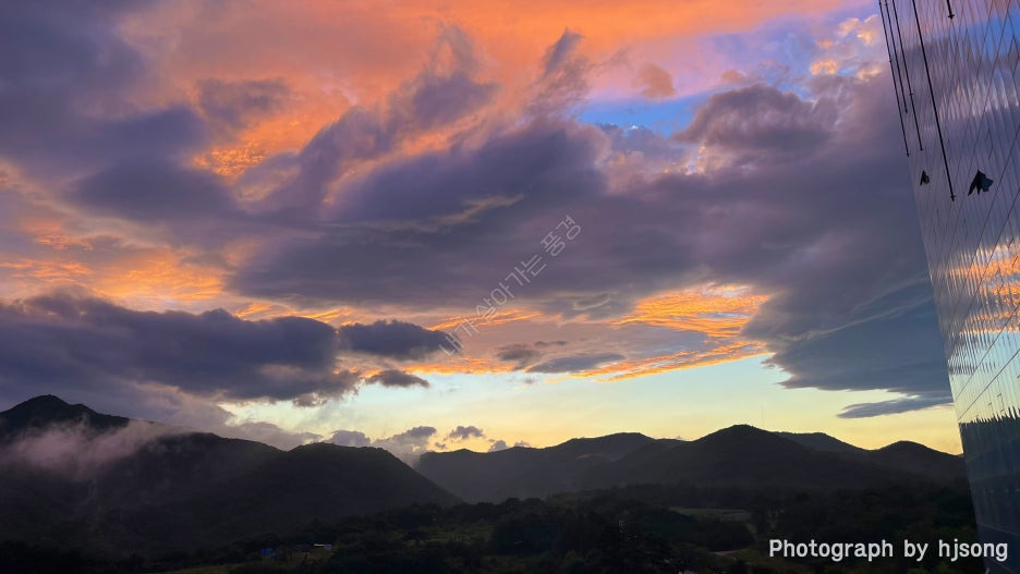 하늘 전체가 오렌지와 분홍빛으로 물들기 시작했어요.