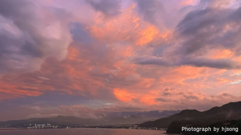 바로 동해 바다 위로 떨어지는 환상적인 저녁 노을이었어요. 🌅