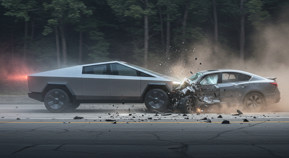 하지만 사이버트럭 같은 초고강도 차체와 충돌하면... 일방적으로 불리하죠.