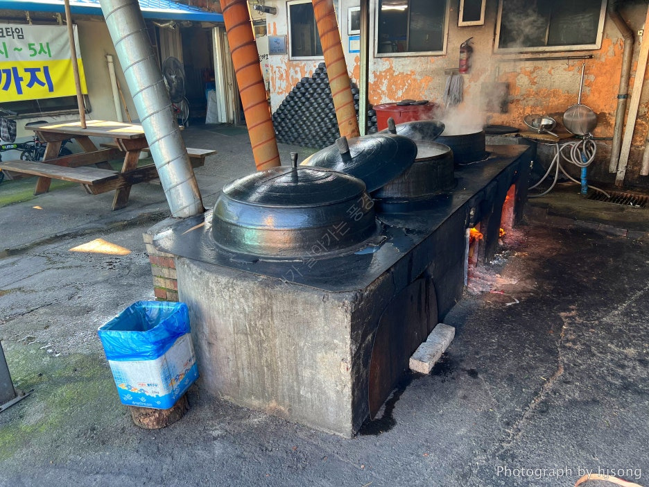 마당에는 커다란 가마솥에 장작불을 떼어 육수를 끓이는 것을 볼 수 있는데, 매일 직접 끓여 깊은 맛을 자랑한다고 하더라고요.