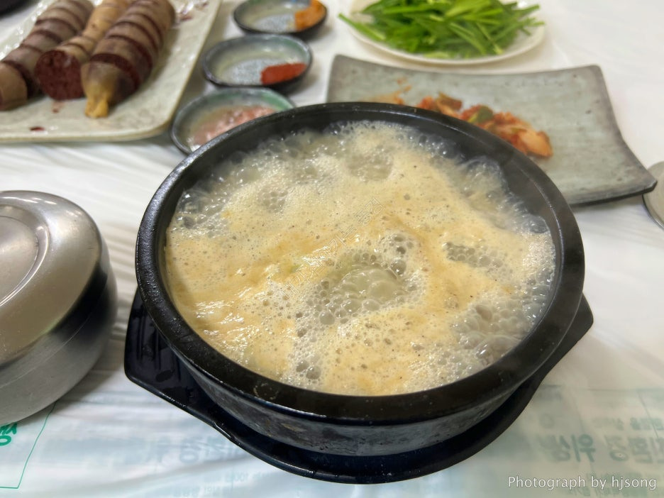 앞마당에서 봤던 가마솥 육수가 어찌나 진하던지 그냥 먹어도 감칠맛이 가득합니다.