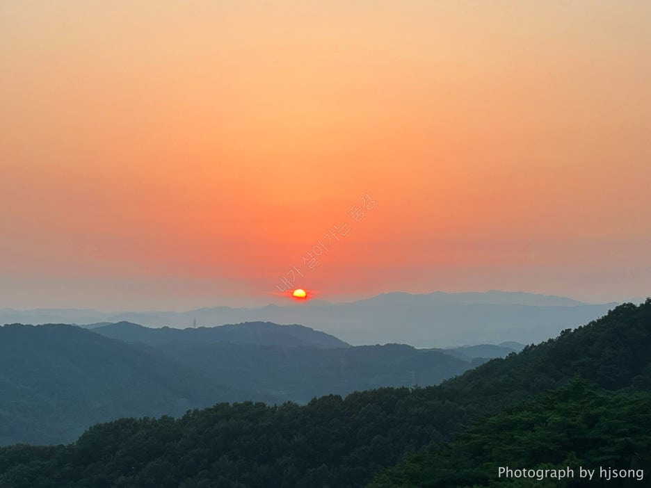 서쪽으로 펼쳐진 넓은 평야와 금강 하류를 배경으로 지는 석양...