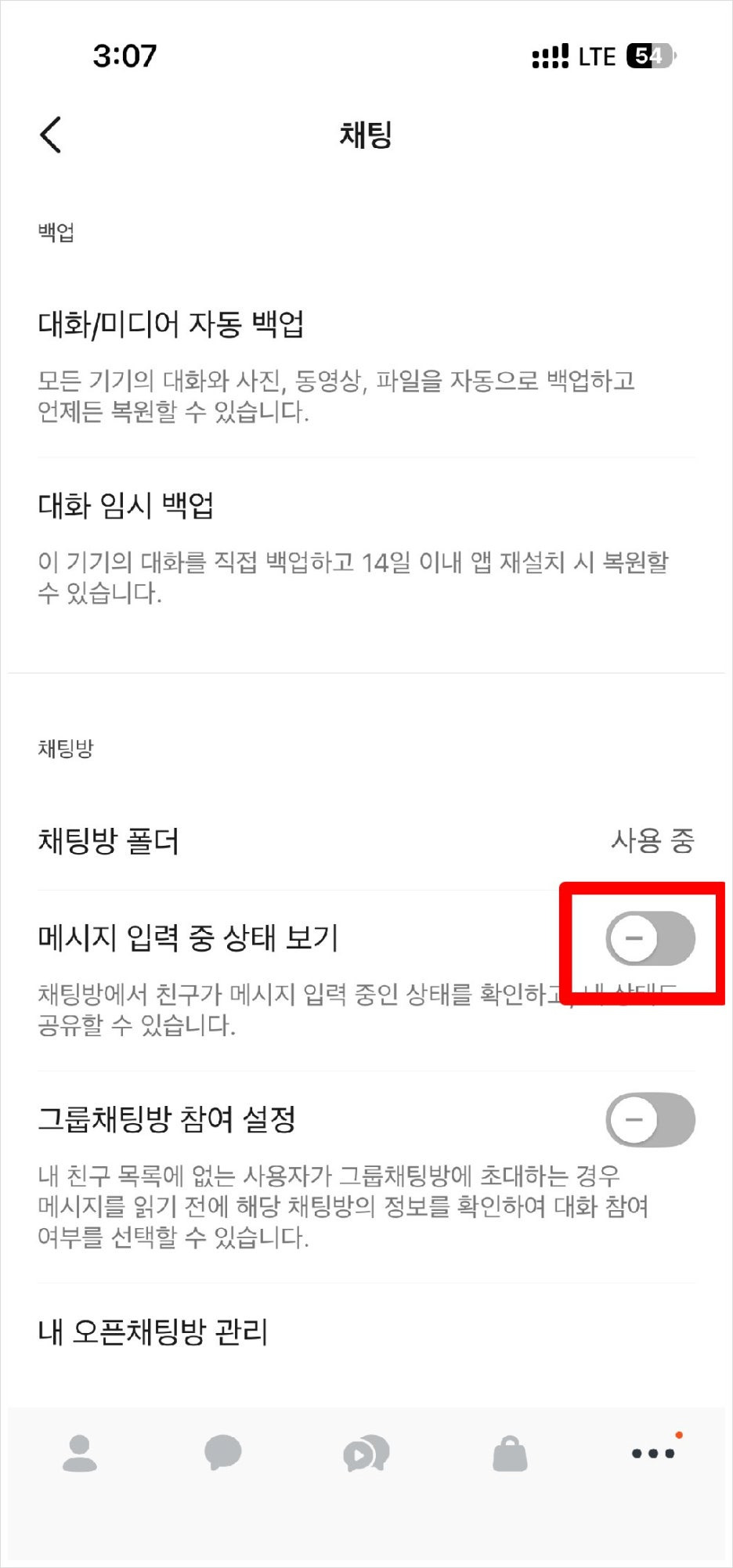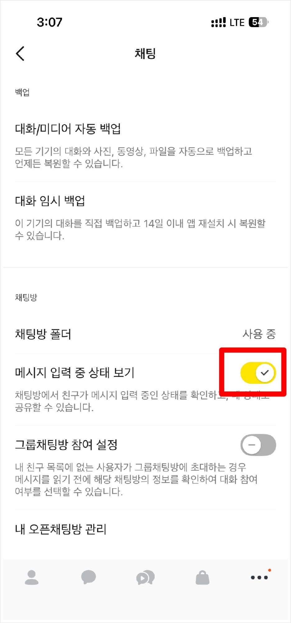 카카오톡 메시지 입력 상태 보기 기능 끄기