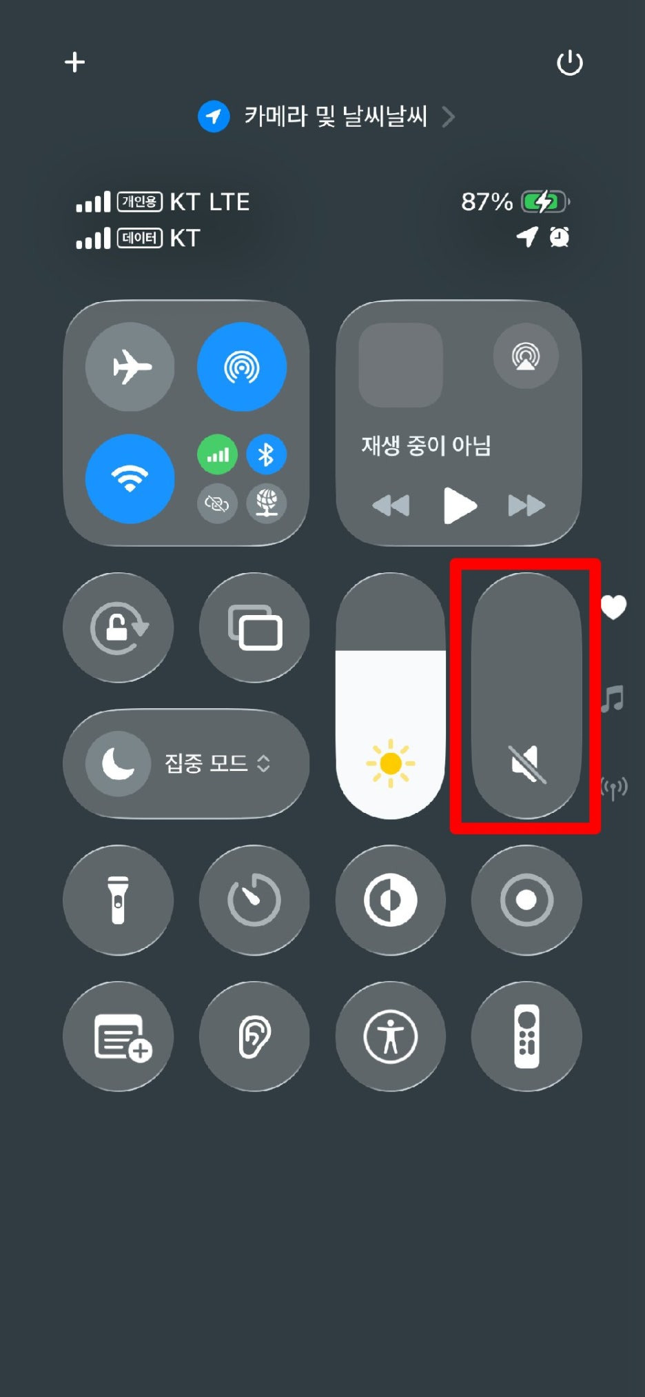 볼륨 슬라이더가 최대치로 고정되어 회색으로 표시되는 걸 볼 수 있을 거예요.