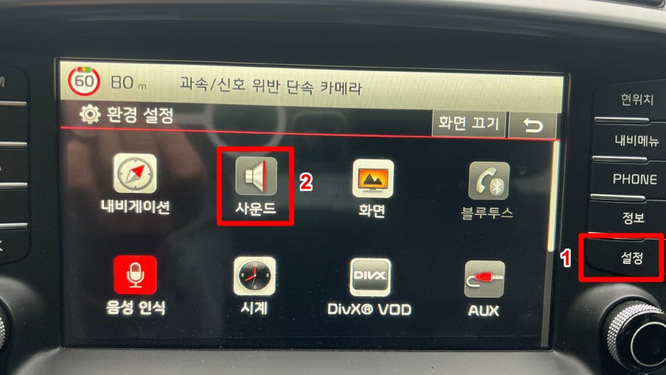 - 차량의 [설정] 버튼을 누른 후, [사운드] 메뉴를 선택합니다.