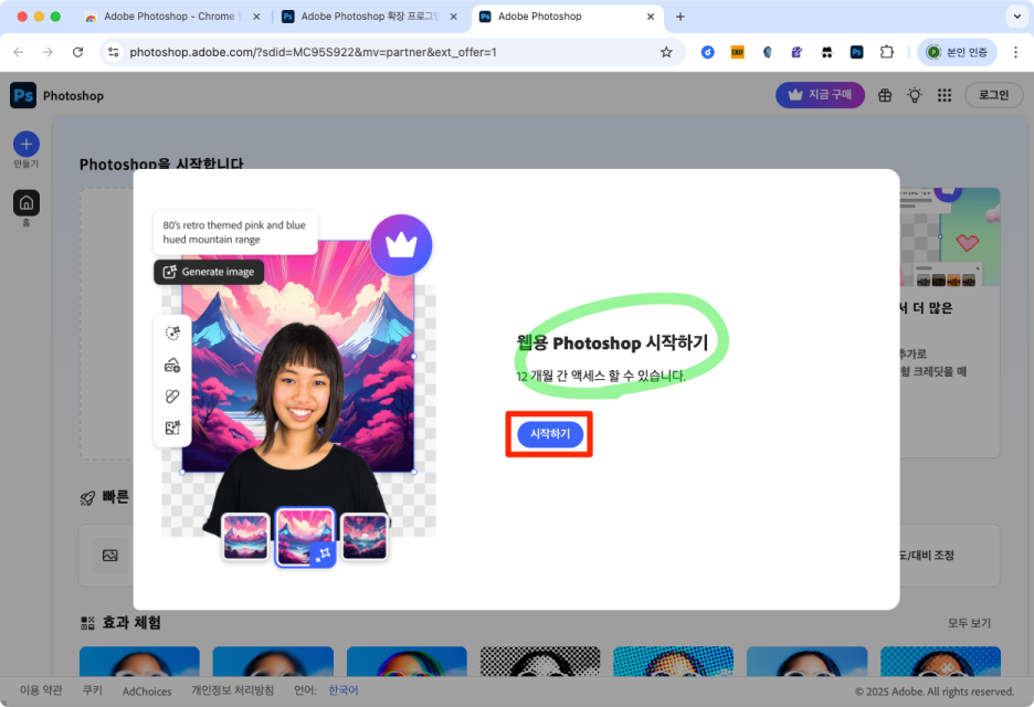 지금 신청하면 Photoshop 웹을 12개월 동안 무료로 사용할 수 있습니다!