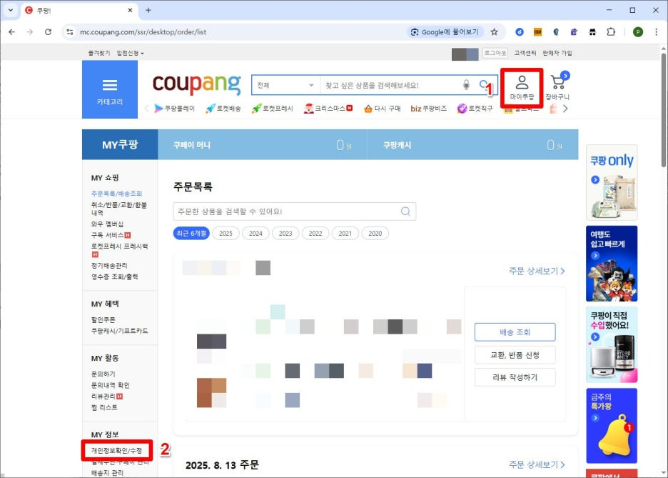 1. 마이쿠팡 접속