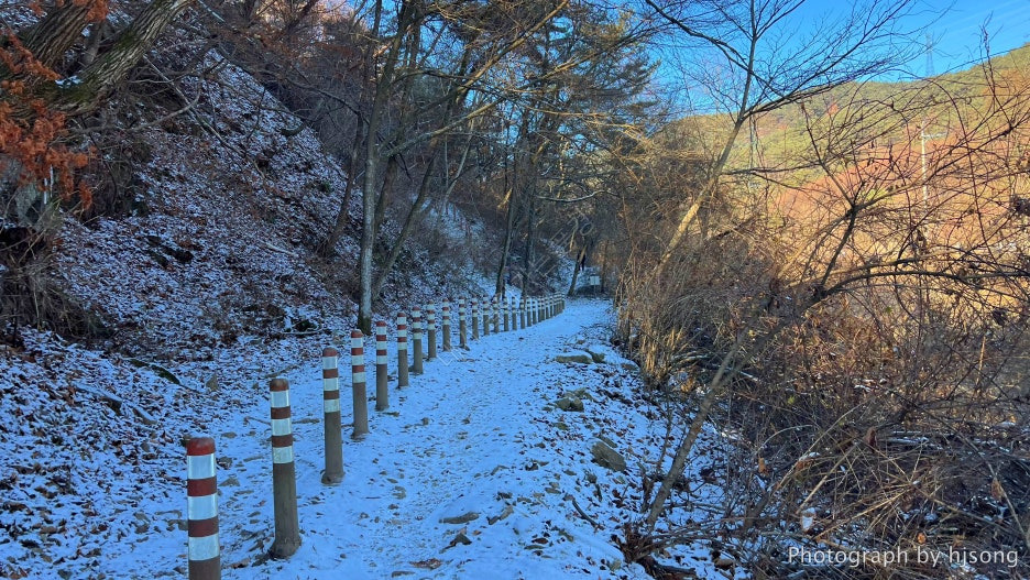 하지만, 이날은 피톤치드 대신에 눈쌓인 정겨운 길을 걸을 수 있었답니다.