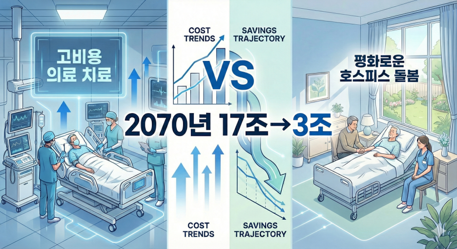 절감된 의료비를 호스피스 등 생애말기 돌봄 시설 확충에 재배치하면 환자의 삶의 질이 크게 개선될 것이라고 해요.